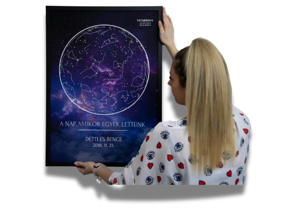 Egy csillagtérkép, ami megörökíti egy különleges pillanat csillagait. Egyedi emlék vagy ajándék, amire mindig jó érzés ránézni.